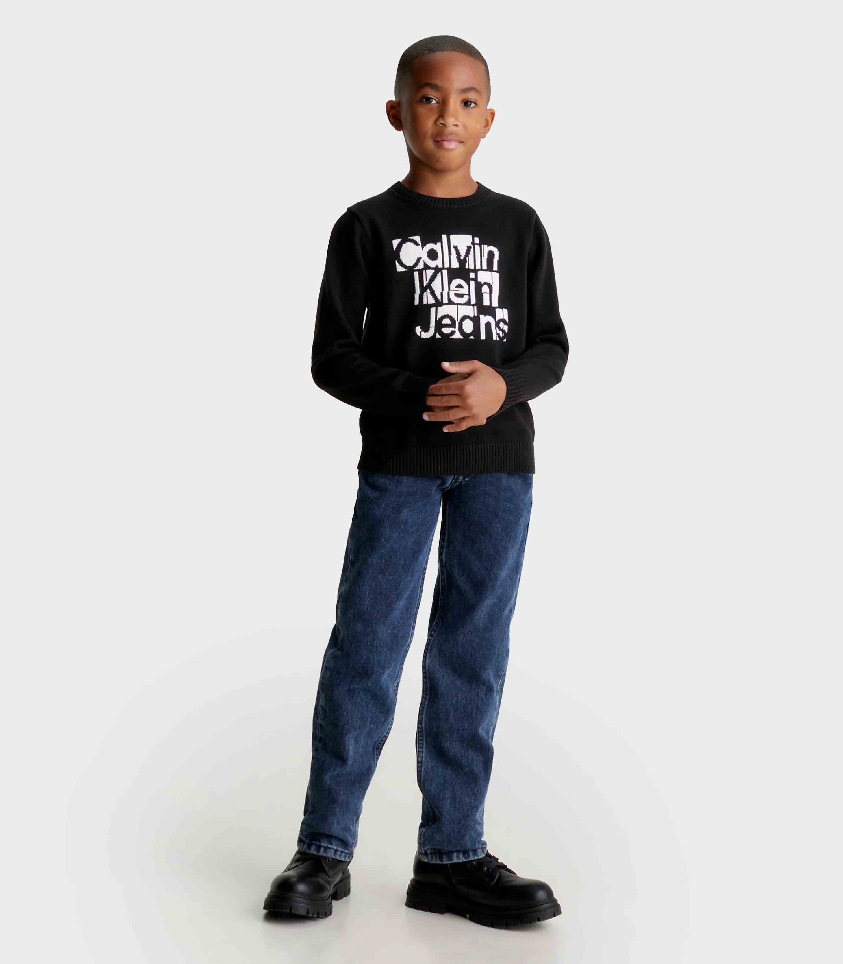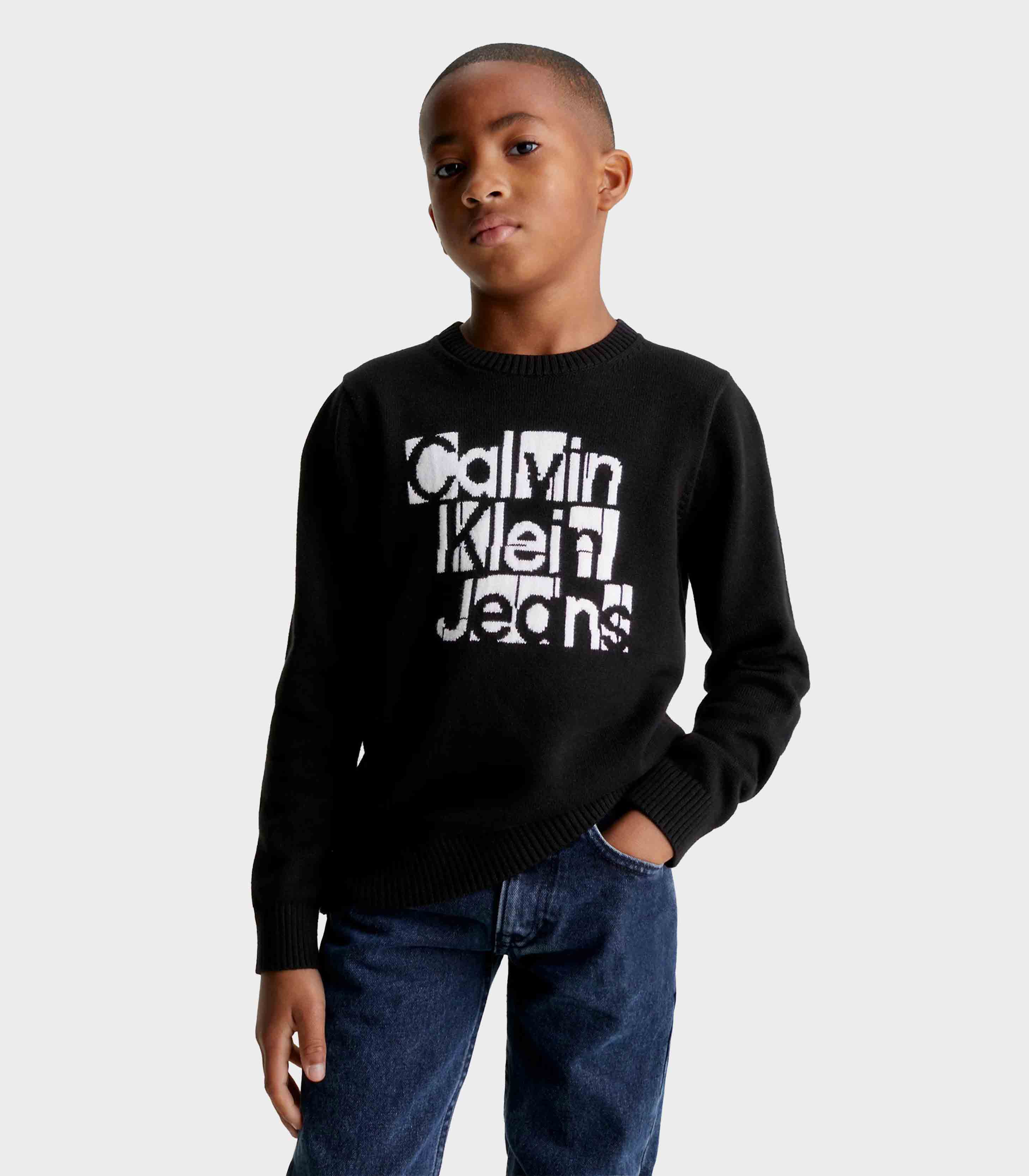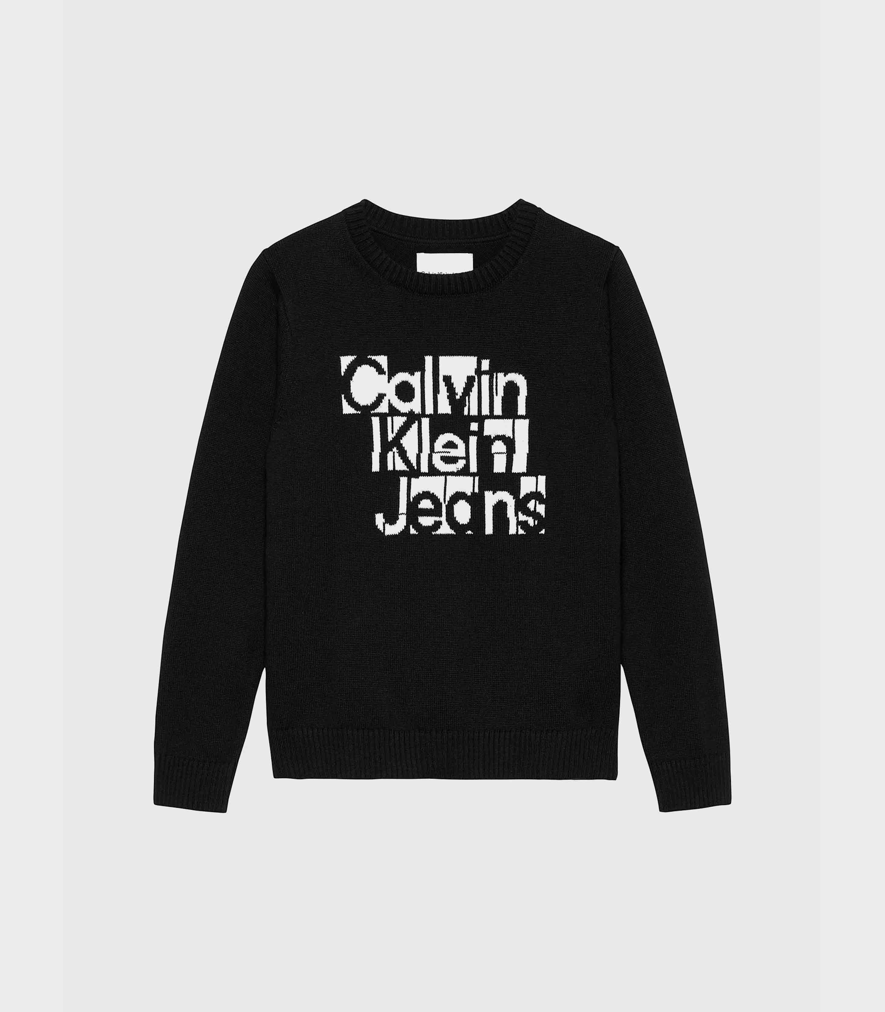 Calvin klein - inst. grid graphic sweater , 6 , ck black , style ib0ib02021