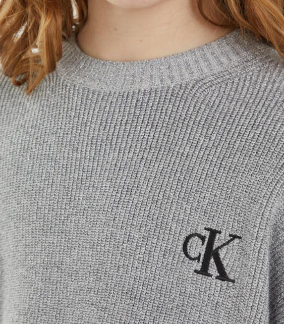 Calvin klein - festive lurex sweater , 8 , light grey heather , style ig0ig02327