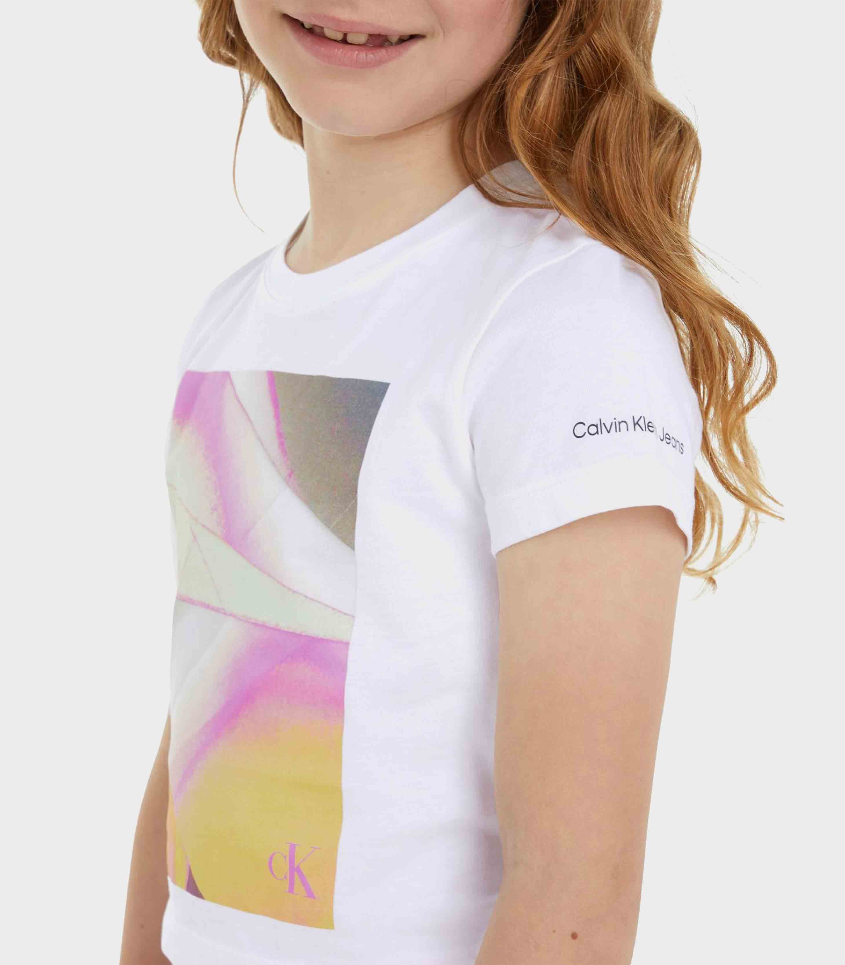 Calvin klein - flower graphic ck t-shirt , 6 , bright white , style ig0ig02341