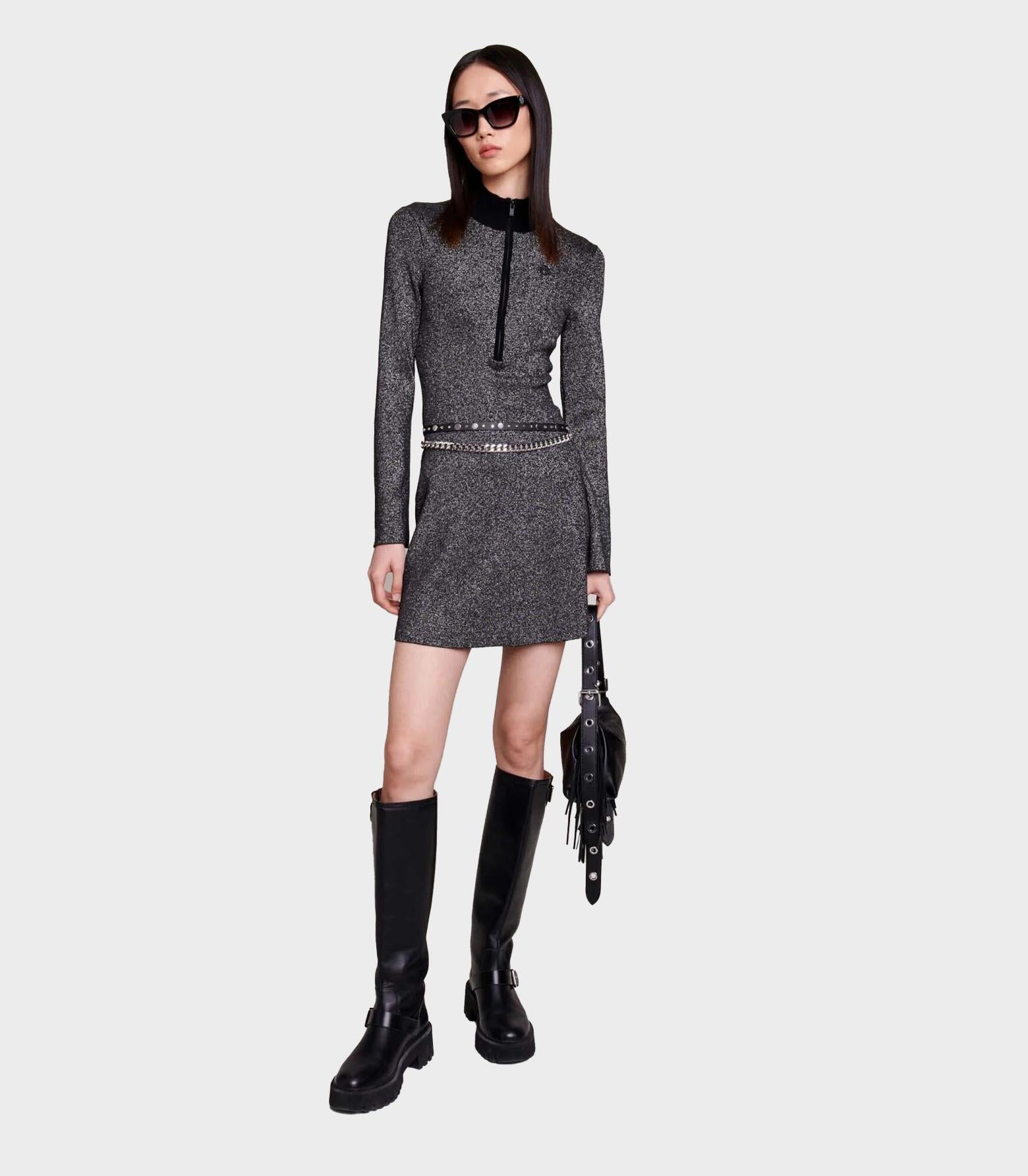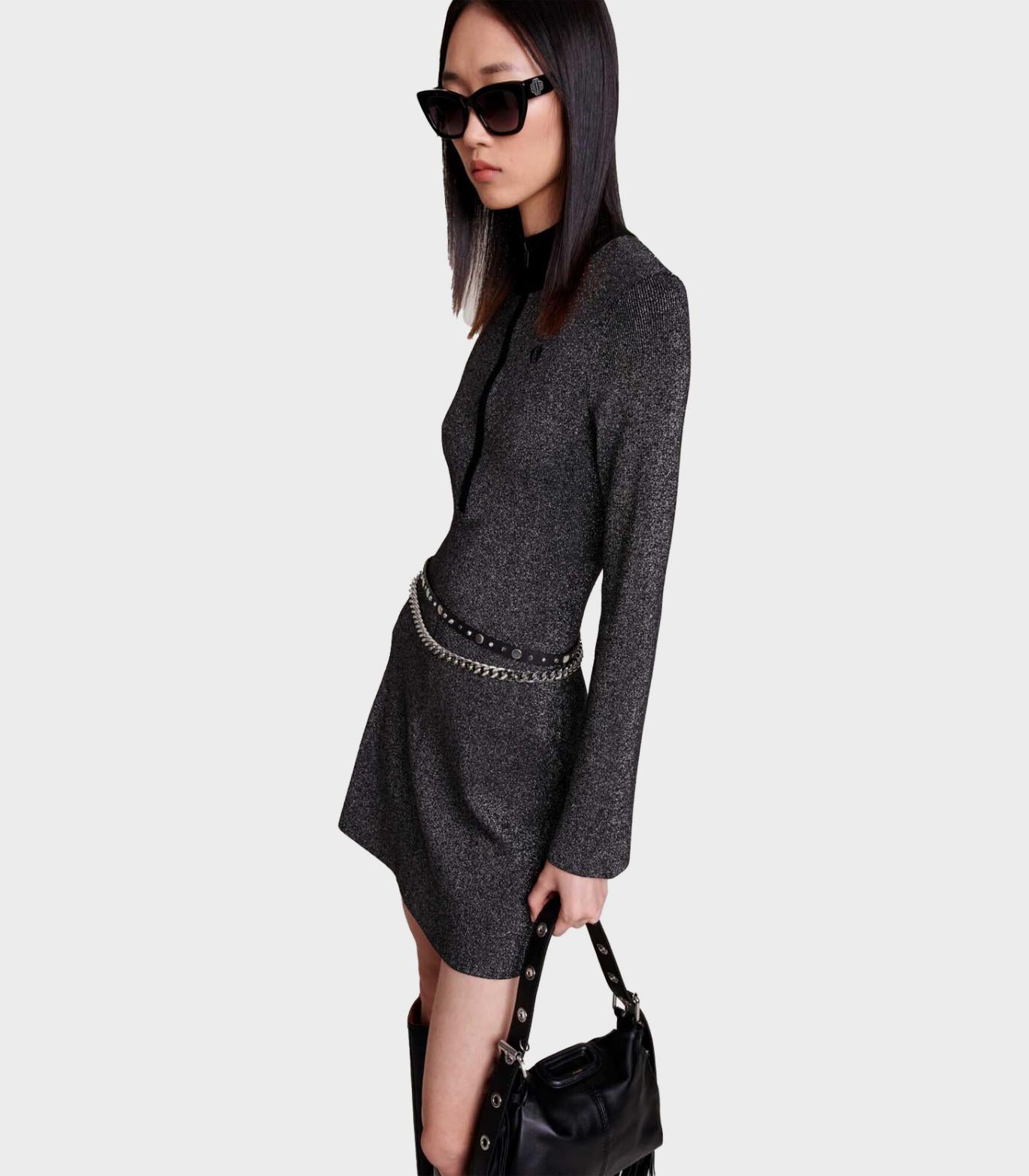 Maje - Short Glittery Knit Dress