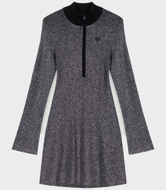 • Casual but still stylish, this short dress features a sequined knit for a new twist on everyday outfits. With long sleeves and flared cuffs, it features a high neck with a contrasting Clover patch and front zip fastening. With its snug fit, it clings to the body and flatters the figure, epitomising sporty chic.