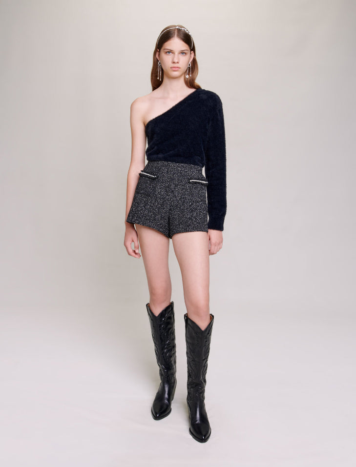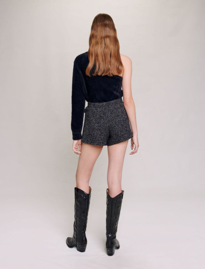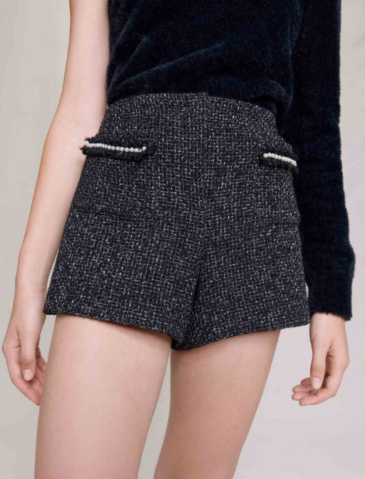 • • Sequinned tweed shorts