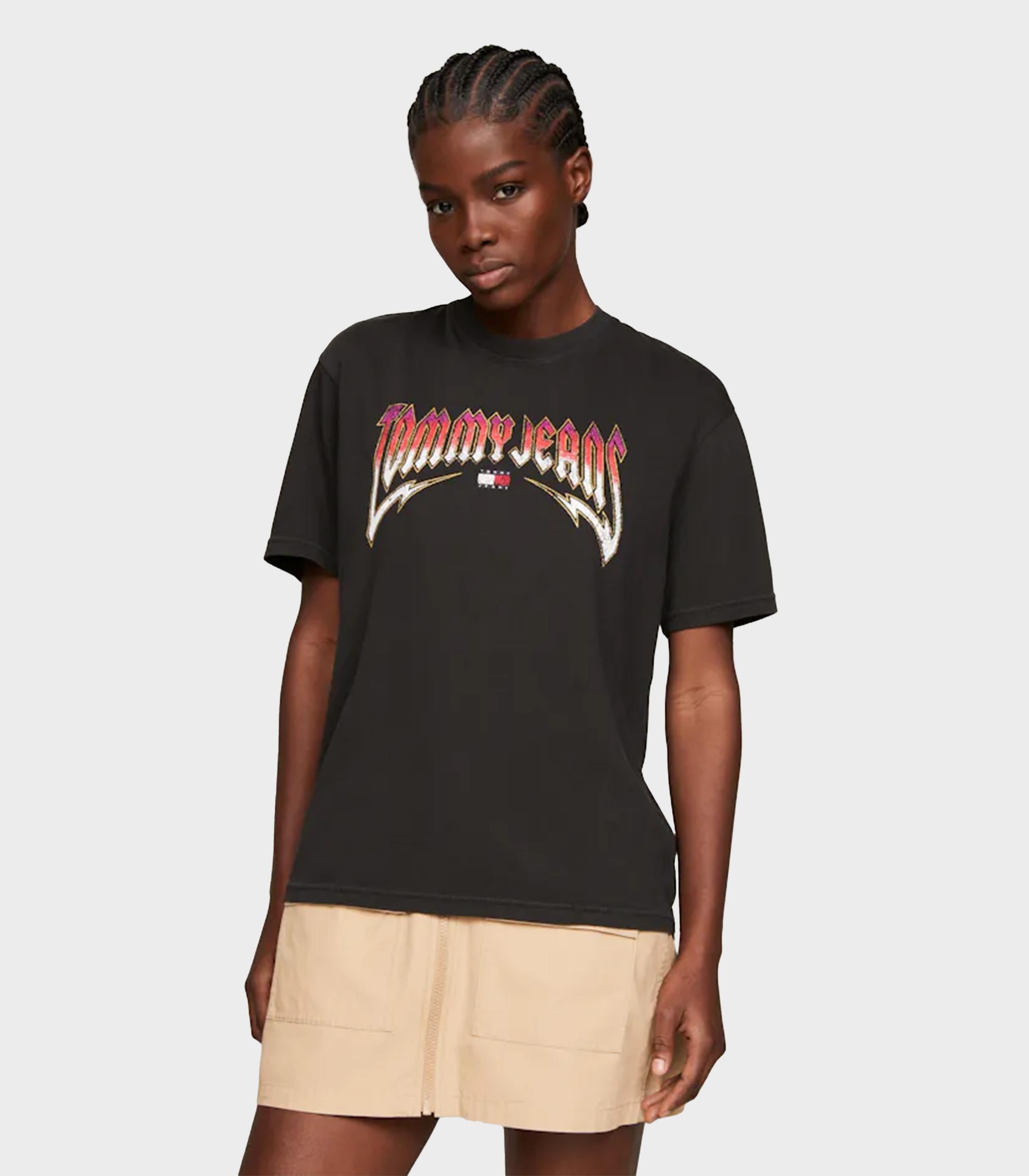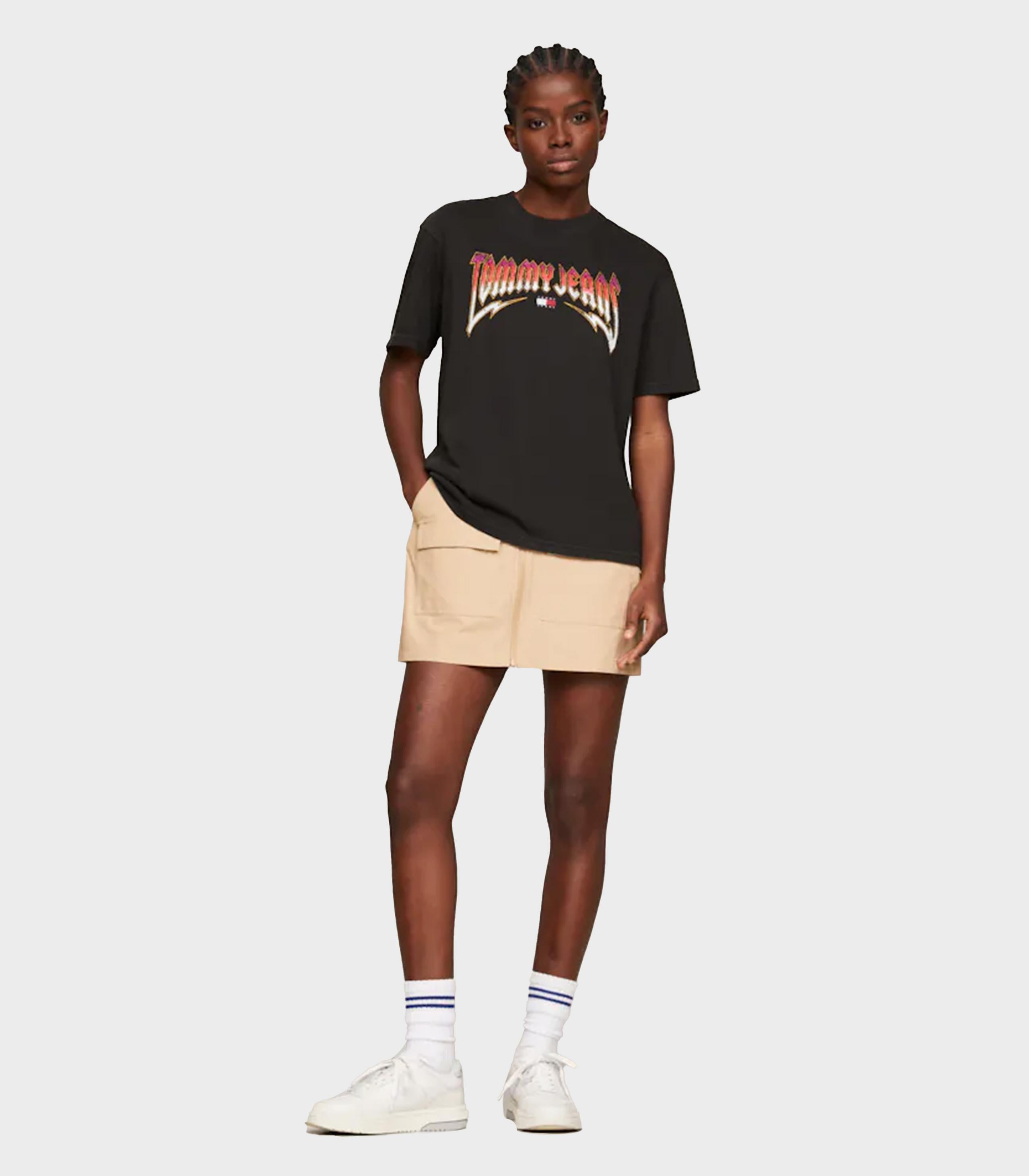 Tommy hilfiger jeans - tjw rlx washed tj rock tee , xs , black , style dw0dw17370