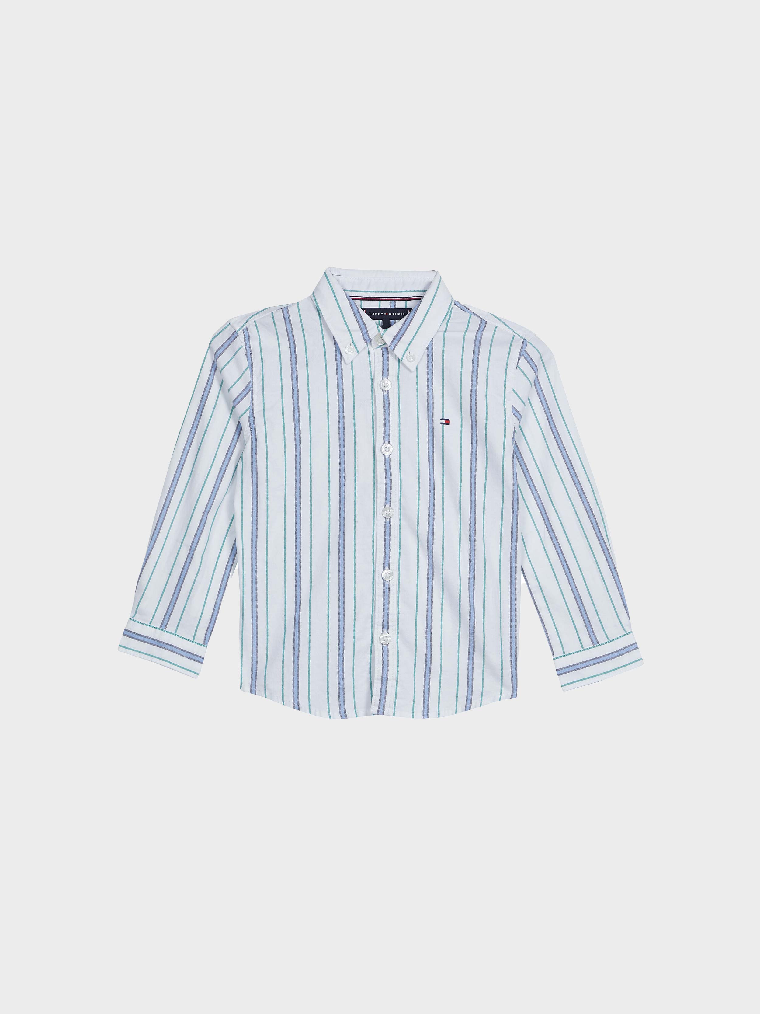 Tommy hilfiger - flex ithaca shirt ls , 10 , white base/green/navy stripes , style kb0kb08729