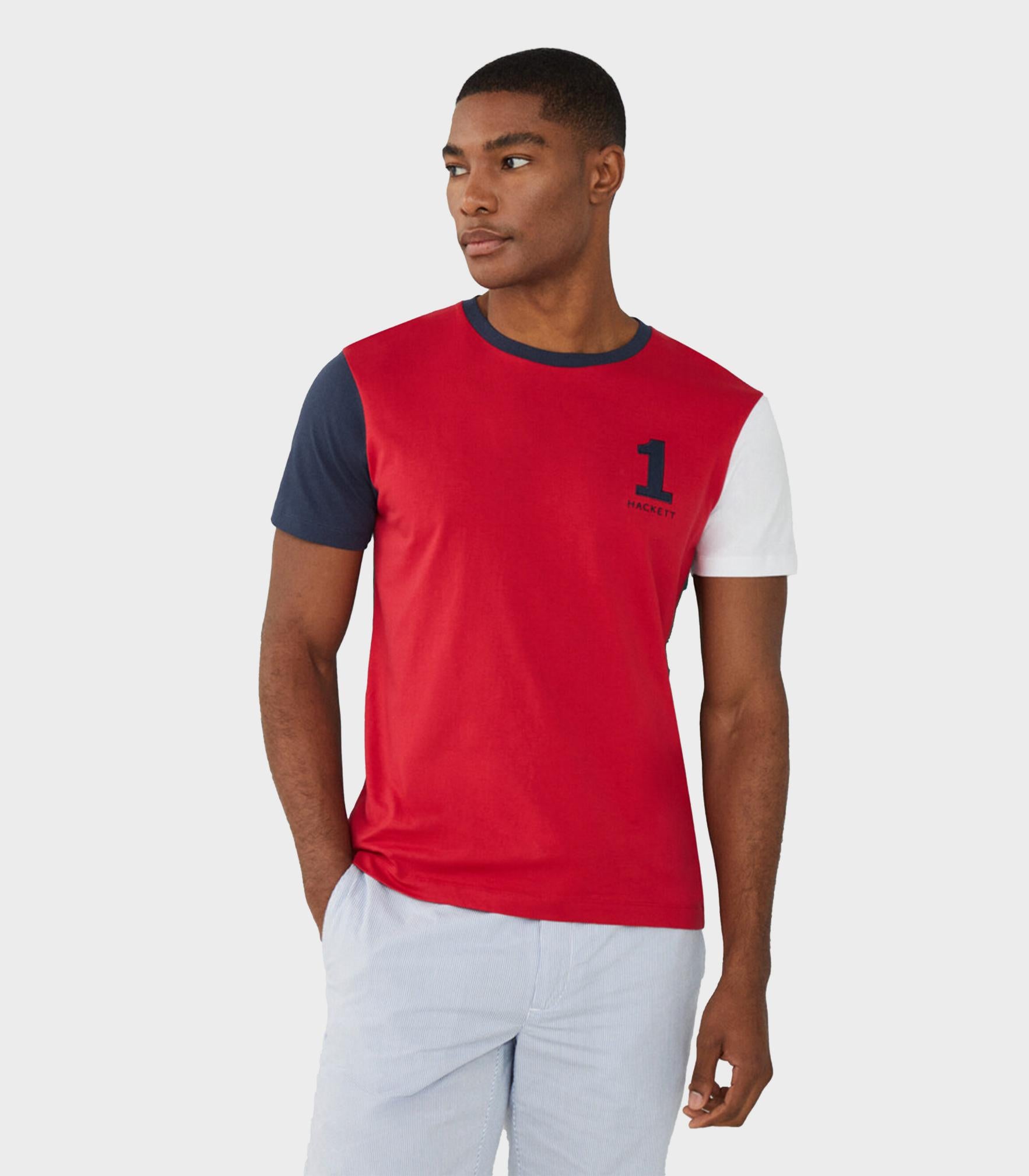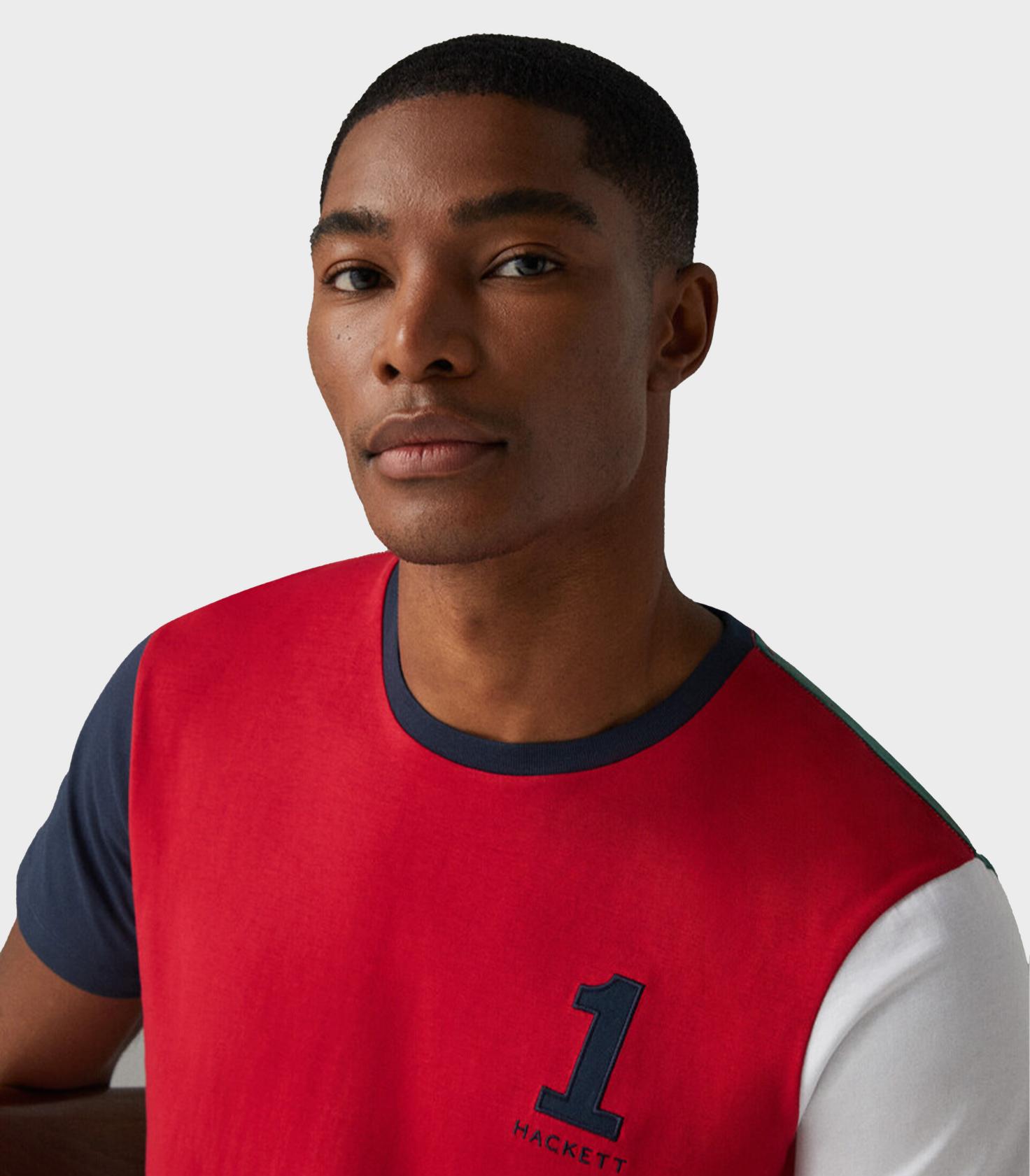 • Revitalize your collection of basics with this T-shirt that creatively mixes various tones in a colour block structure. The number 1 embroidered on the chest commemorates the sporting tradition of our brand with the iconic HACKETT logo as the perfect complement.