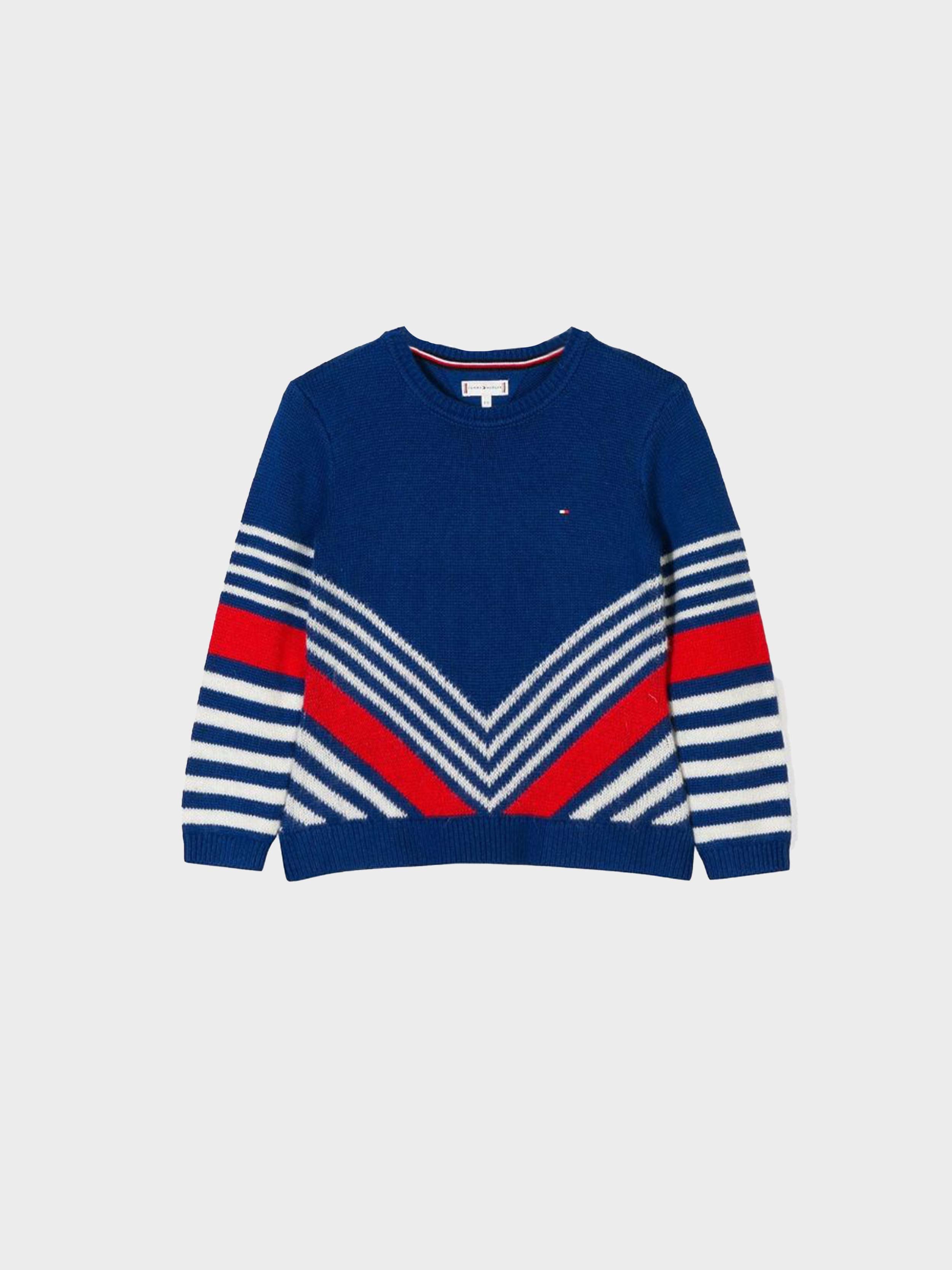 Tommy hilfiger - bold fluffy chevron sweater , 6 , mazarine blue/multi , style kg0kg03857